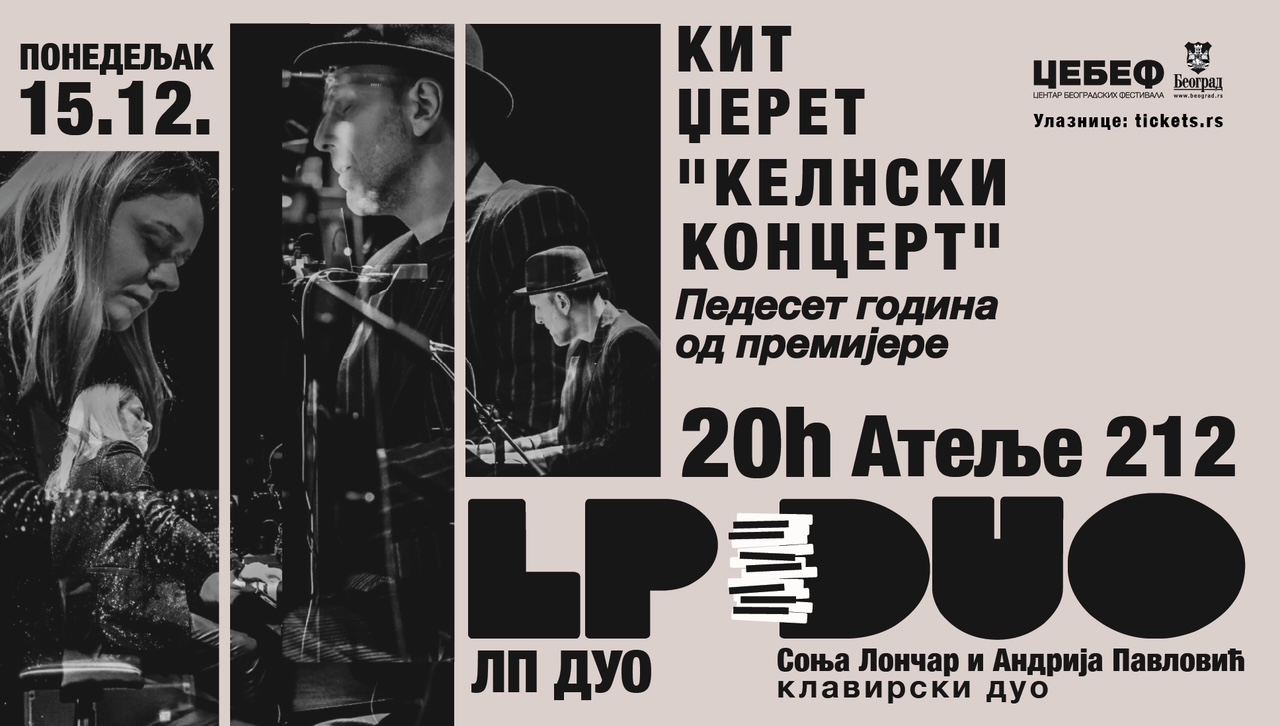 U čast 50. godišnjice jednog od najvažnijih muzičkih dela XX veka, LP Duo će premijerno izvesti „Kelnski koncert“ Keitha Jarretta. Do danas, ovo je najprodavaniji album u istoriji džez muzike i klavirske improvizacije. Ovaj poseban događaj u realizaciji Centra beogradskih festivala održaće se i 15. decembra u 20 časova jer je ranije najavljeni koncert za 17. decembar odmah rasprodat.
